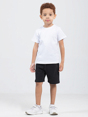 Футболка детская с коротким рукавом. Вырез горловины круглый, обработан притачной бейкой из рибаны с эластаном.