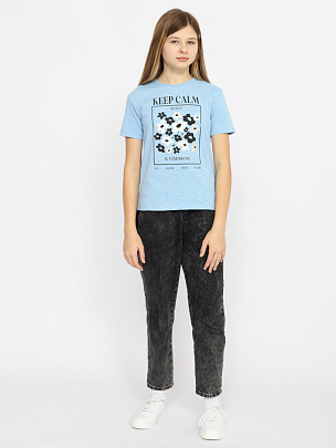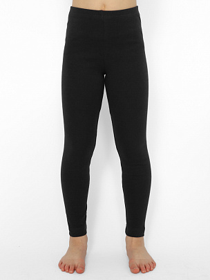Легинсы для девочки без боковых швов и манжет. Верхний срез обработан швом вподгибку, с предварительно притачанной резинкой.