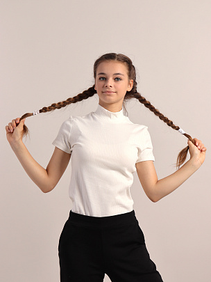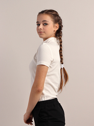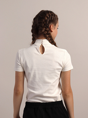 Водолазка из интерлока с разборой(лапша),  с короткими рукавами и воротником-стойкой.