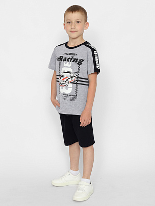 Комплект для мальчика (футболка, шорты) светло-серый меланж