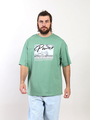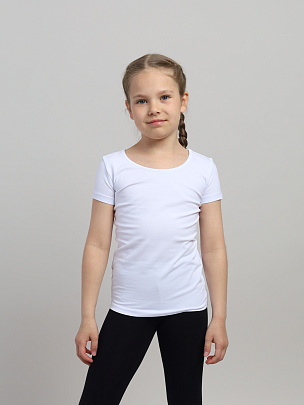 Футболка с коротким рукавом. Горловина круглая, обработана узким воротником из полотна с эластаном. Перед оформлен принтом с использованием краски с эффуктом "металлик".